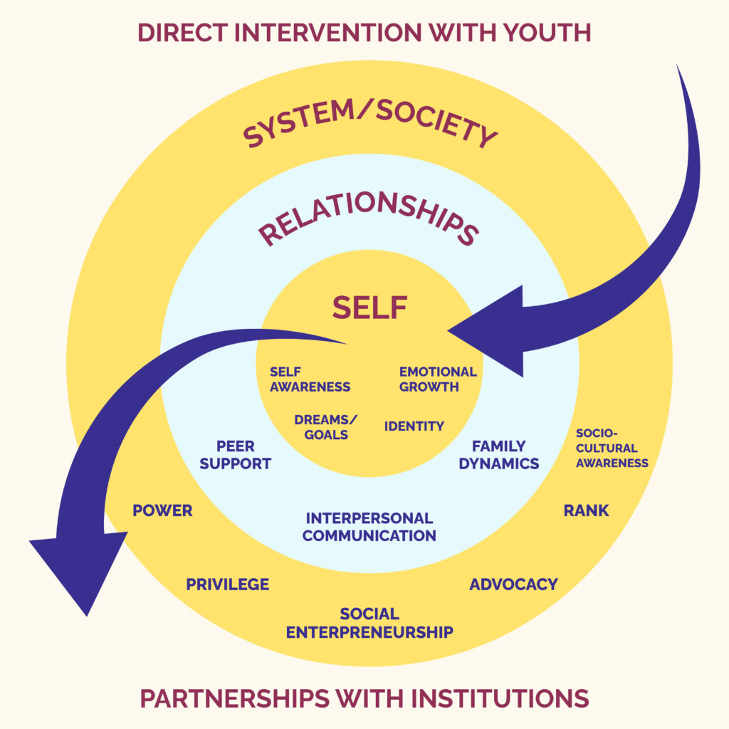 We partner with institutions to bridge the gap between academics and life skills, creating safe, inclusive spaces where young people can discover who they are, connect meaningfully with others, and lead with impact.